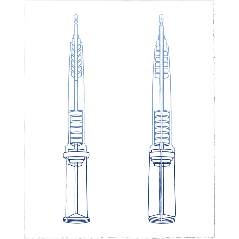 The Totem Pole of Lincoln Park and the Boystown Rainbow Pylons paintings are a pair of form studies made for the larger Gentlemen piece.
