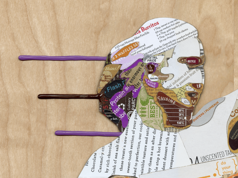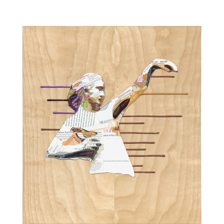 post-consumer packaging cardstock, acrylic, on birch panel